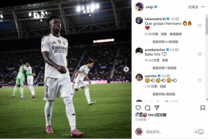 維尼修斯社媒曬出比賽照片,莫德里奇留言評論:“多么精彩的進球,兄弟。”