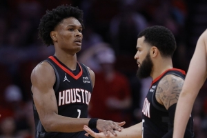 現(xiàn)實(shí)地說,現(xiàn)在必須是謝潑德時(shí)間了,這位21歲的球員應(yīng)該成為替補(bǔ)席上第一個(gè)出場(chǎng)的后衛(wèi)。在火箭已經(jīng)降低期望值的情況下,沒有理由再將這位2024年的探花秀按在板凳席上。上賽季盡管他幾乎整個(gè)賽季都保持健康,但作為新秀的他只打了652分鐘,對(duì)一個(gè)順位如此之高的球員來說,這個(gè)數(shù)字少得驚人。除了受傷的尼古拉-托皮奇和德文-卡特,以及森林狼的羅布-迪林厄姆,其他所有2024年的樂透秀都至少打了1000分鐘。