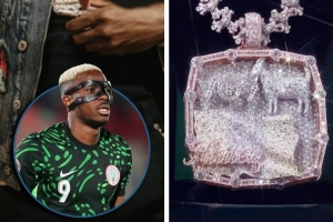 據(jù)介紹,這條項鏈委托珠寶商Benny The Jeweler打造,由14000顆寶石鑲嵌而成,共986克拉,項鏈總重近1.5公斤。項鏈正面鑲嵌著一只山羊(goat),飾有奧斯梅恩的名字首字母和球衣號碼“VO9”,下方是綠色黃金打造的尼日利亞國旗,并疊印女兒海莉的名字。項鏈背面刻有設(shè)計師的簽名,該品牌在社媒展示了這款項鏈,配上“MVP”字樣縮寫,項鏈上面還點綴了微型足球圖案。