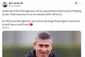 體育資訊12月30日訊 據(jù)記者雅各布斯(Ben Jacobs)報道,尼克·蒙哥馬利將出任北京國安主帥,預(yù)計正式協(xié)議在48小時內(nèi)簽署。