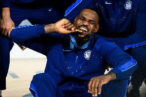 美國籃協(xié)官推曬出詹姆斯代表美國男籃奪金的賽場照并寫道:“祝三屆奧運金牌得主??@詹姆斯 生日快樂!????”