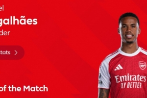 本場比賽加布里埃爾為球隊先拔頭籌,賽后他也當(dāng)選英超官方球迷票選全場最佳球員。