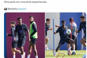 體育資訊9月24日訊 據(jù)記者Sergi Capdevila報(bào)道,16歲中衛(wèi)庫魯馬參加巴薩一線隊(duì)訓(xùn)練。