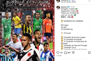 體育資訊12月31日訊 今日,前國安外援德索薩更新社媒,正式宣布退役。他用葡語、英語、中文等五種語言向足球致謝。