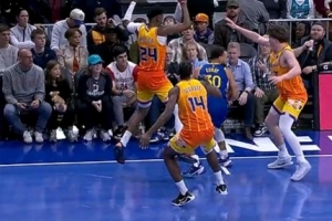 GIF-庫(kù)里這下有些扭到,但應(yīng)該沒(méi)事