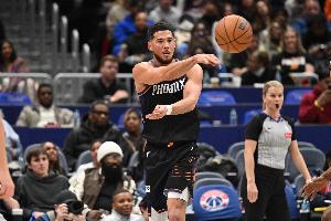 第三節(jié)比賽,上半場狀態(tài)一般的布克終于開始發(fā)力,里突外投連續(xù)取分帶隊(duì)追分,他單節(jié)13中7,三分4中2砍下19分2助攻1搶斷。