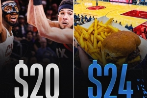 根據(jù)票務(wù)網(wǎng)站信息,本場比賽最低門票價格為20美元。而在球館內(nèi),你點一個漢堡薯條組合都需要24美元。