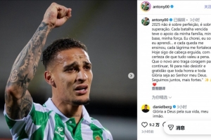 體育資訊1月1日訊 2026年到來(lái),皇家貝蒂斯前鋒安東尼更新社交媒體,總結(jié)了2025年。