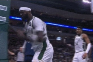 GIF-波蒂斯上籃被切沒吹犯規(guī)相當(dāng)不滿 一記重拳怒錘籃架