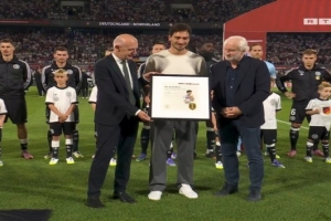 體育資訊9月8日訊 德國隊在本輪世預(yù)賽主場迎戰(zhàn)北愛爾蘭,主隊賽前為退役的老將胡梅爾斯舉辦了致敬儀式。