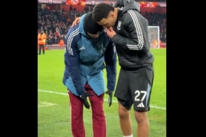現(xiàn)場觀戰(zhàn)的他也在賽后同國家隊(duì)友羅杰斯交流,他用手勢示意自己的膝蓋腫脹,并似乎告訴摩根·羅杰斯:“我的膝蓋受傷了,太糟糕了!”