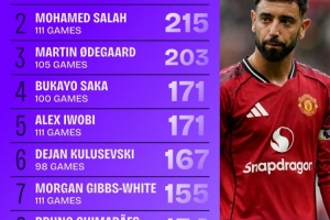 體育資訊9月11日訊 數(shù)據(jù)顯示,自2022/23賽季開始,B費(fèi)是英超運(yùn)動(dòng)戰(zhàn)創(chuàng)造機(jī)會最多的球員。
