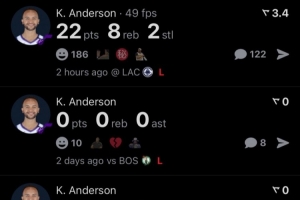 李凱爾今日賽前已連續(xù)7場(chǎng)遭DNP 上一次出戰(zhàn)是2025年12月16日對(duì)獨(dú)行俠