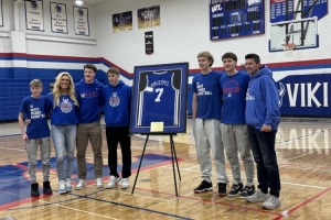 克尼佩爾和家人一共出席了此次活動,克尼佩爾捐贈了自己簽名的杜克大學(xué)男籃球衣,這件球衣和其他球衣一起,掛在副館附近的陳列墻上。
