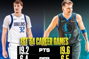 美媒對比了弗拉格和東契奇在菜鳥賽季球隊前35場比賽的數(shù)據(jù)對比,巧合的是兩人都在35場比賽里出戰(zhàn)34場,數(shù)據(jù)如下: