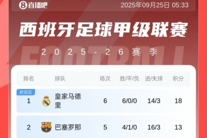 體育資訊09月25日訊 西甲3場比賽戰(zhàn)罷,馬競3-2絕殺巴列卡諾,皇家社會1-0馬洛卡,赫塔菲1-1阿拉維斯,最新積分榜如下: