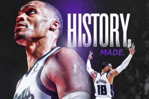 比賽第四節(jié),國王后衛(wèi)拉塞爾·威斯布魯克突破上籃得手,得到本場比賽第17分,個人生涯總得分來到26711,超越奧斯卡·羅伯特森(26710)升至NBA歷史得分排行榜第15位,成為NBA歷史控衛(wèi)得分王!