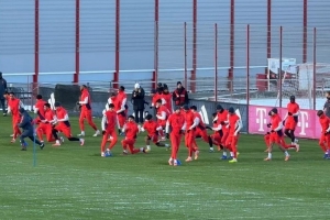 體育資訊1月3日訊 據(jù)記者Kerry Hau報(bào)道,穆西亞拉參加拜仁訓(xùn)練之前的熱身。