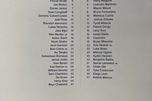 后衛(wèi):達洛特、馬茲拉維、德里赫特、馬奎爾、利桑德羅、馬拉西亞、多爾古、約羅、盧克-肖、海文、泰勒·弗雷德克森、迭戈·萊昂