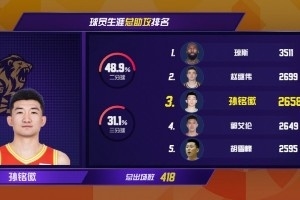 體育資訊1月5日訊 中籃聯(lián)發(fā)文,CBA聯(lián)賽第10輪一共有3名國內(nèi)球員送出11次助攻,孫銘徽更是躋身歷史助攻榜前三。原文如下: