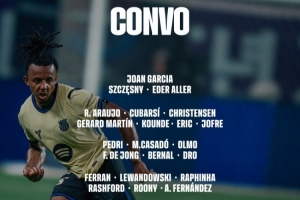 體育資訊9月25日訊 北京時(shí)間9月26日凌晨3:30,2025-26賽季西甲聯(lián)賽第6輪,巴塞羅那將客戰(zhàn)皇家奧維耶多。賽前,巴薩官方公布球隊(duì)大名單,萊萬領(lǐng)銜鋒線,亞馬爾缺席,小將德羅在列。