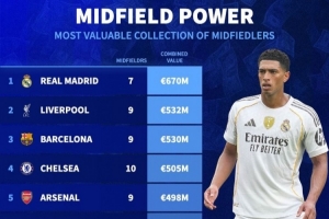 各隊(duì)中場(chǎng)球員總身價(jià)排行