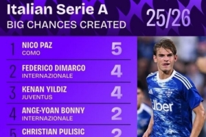 體育資訊9月26日訊 知名足球數(shù)據(jù)網(wǎng)站Squawka統(tǒng)計了2025/26賽季意甲聯(lián)賽截至目前的球員創(chuàng)造重大機會榜。