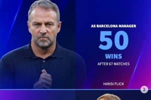自執(zhí)教巴薩以來,弗里克已經(jīng)帶隊(duì)進(jìn)行了67場(chǎng)比賽,取得50勝8平9負(fù)的戰(zhàn)績(jī),接近執(zhí)教拜仁63場(chǎng)50勝的數(shù)據(jù)。