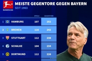 體育資訊9月26日訊 本周五晚拜仁即將在主場(chǎng)迎戰(zhàn)不萊梅,德國(guó)轉(zhuǎn)會(huì)市場(chǎng)網(wǎng)統(tǒng)計(jì)了德甲成立以來(lái)面對(duì)拜仁丟球數(shù)最多的10支球隊(duì),其中漢堡排名第一,不萊梅就位居第二。