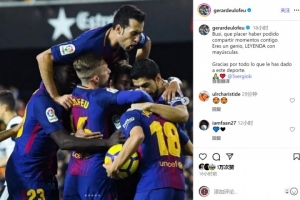 德烏洛費(fèi)烏社媒曬出與布斯克茨等隊(duì)友慶祝的合照,配文:“布斯克茨,很榮幸與你共度那些美好時(shí)刻,你是天才,名副其實(shí)的傳奇,感謝你為這項(xiàng)運(yùn)動(dòng)奉獻(xiàn)的一切。”