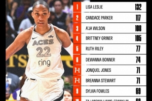 據(jù)統(tǒng)計(jì),本場(chǎng)過(guò)后阿賈-威爾遜在季后賽蓋帽數(shù)來(lái)到108個(gè),她也超越格里娜,獨(dú)居WNBA歷史第3位。在她身前是坎迪斯-帕克的117次和麗莎-萊斯莉的132次。