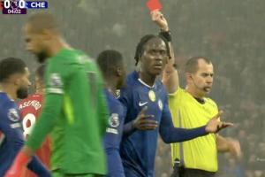 上輪英超,十人切爾西1-2不敵十人曼聯(lián),比賽開場5分鐘,切爾西門將桑切斯就因出擊放倒姆伯莫被紅牌罰下,當(dāng)時查洛巴對桑切斯“死亡凝視”。