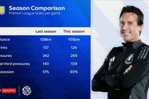體育資訊9月28日訊 本賽季英超,維拉0勝3平2負積3分,位居聯(lián)賽第18位。日前,《天空體育》統(tǒng)計了維拉本賽季與上賽季的聯(lián)賽場均數(shù)據(jù)。
