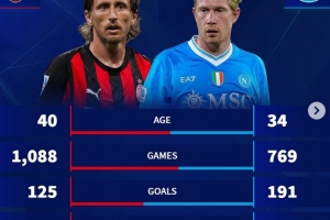 體育資訊9月28日訊 本輪意甲AC米蘭將迎戰(zhàn)那不勒斯,德轉(zhuǎn)也對(duì)比兩隊(duì)中場莫德里奇與德布勞內(nèi)生涯數(shù)據(jù),具體如下: