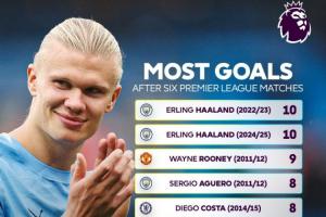體育資訊09月29日訊 英超官方曬出了一組數(shù)據(jù),調(diào)侃哈蘭德6輪“只”進(jìn)8球,追平個(gè)人最差開(kāi)局。