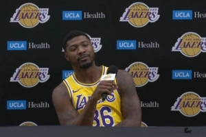 體育資訊9月30日訊 湖人新援斯瑪特在球隊(duì)媒體日接受采訪。