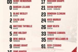 亨德森、利拉德、布雷克-韋斯利、凱萊布-樂福、塞布爾、朱-霍勒迪、阿夫迪亞、杰拉米-格蘭特、楊瀚森、夏普、呂佩爾、克林根、克里斯-穆雷、杜普-里斯、卡馬拉、羅威、西索科。