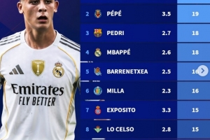 體育資訊9月30日訊 德轉(zhuǎn)盤(pán)點(diǎn)了本賽季西甲創(chuàng)造機(jī)會(huì)榜單,其中居勒爾共計(jì)21次創(chuàng)造機(jī)會(huì)居首,具體如下(場(chǎng)均數(shù)據(jù)+總數(shù)據(jù)):