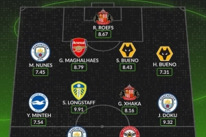 后衛(wèi):努內(nèi)斯(曼城)、加布里埃爾(阿森納)、圣地亞哥-布埃諾(狼隊(duì))、烏戈-布埃諾(狼隊(duì))