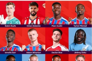 中場(chǎng):薩爾(水晶宮)、沃頓(水晶宮)、賴斯(阿森納)、多庫(kù)(曼城)