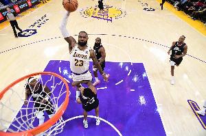 主持人邀請(qǐng)詹姆斯對(duì)自己湖人生涯的幾大隔扣打分(10分制)。