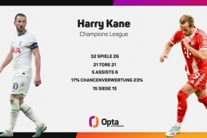 體育資訊10月1日訊 根據(jù)統(tǒng)計,凱恩為拜仁出戰(zhàn)26場歐冠,已經打入了21粒進球,這一數(shù)字已經追平了他在熱刺效力期間32場歐冠比賽的總進球數(shù)。