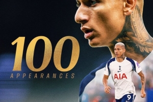 本場比賽理查利森首發(fā)出戰(zhàn),據統(tǒng)計這也是他在熱刺各項賽事第100次出場里程碑之戰(zhàn),他在此前為球隊貢獻23球11助攻。