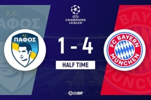 體育資訊10月1日訊 北京時(shí)間10月1日凌晨3:00,歐冠聯(lián)賽階段第2輪,帕福斯在斯泰利奧斯基里亞基迪斯體育場迎戰(zhàn)拜仁。上半場凱恩雙響,格雷羅建功,杰克遜破門,奧利塞兩助攻,金玟哉解圍失誤,奧爾西奇遠(yuǎn)射破門,拜仁暫4-1帕福斯。
