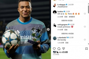 本場(chǎng)比賽姆巴佩上演帽子戲法,賽后他也在社媒曬出與全場(chǎng)最佳獎(jiǎng)杯以及比賽用球的合影。