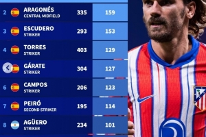 體育資訊10月1日訊 在本輪歐冠馬競5-1擊敗法蘭克福的比賽中,格列茲曼打進個人馬競生涯第200球。德轉(zhuǎn)也盤點了馬競隊史射手榜,其中格列茲曼居首,具體如下: