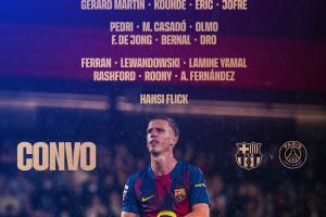 體育資訊10月01日訊 巴薩公布?xì)W冠對(duì)陣巴黎的大名單,萊萬、亞馬爾、佩德里領(lǐng)銜,巴爾德復(fù)出,一線隊(duì)門將僅什琴斯尼。