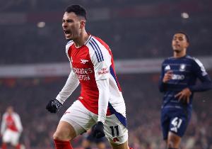 體育資訊10月2日訊 在本輪歐冠阿森納對陣奧林匹亞科斯的比賽,馬丁內(nèi)利率先進(jìn)球。