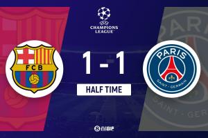 體育資訊10月2日訊 歐冠聯(lián)賽階段第二輪比賽,目前巴薩主場1-1巴黎。