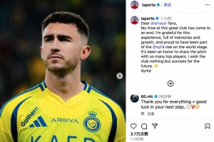 我在這家偉大俱樂部的時光已經(jīng)畫上句號,對于這段充滿回憶與成長的經(jīng)歷,我心懷感激,我為成為沙特聯(lián)賽在世界舞臺崛起的一部分而感到自豪,能與眾多頂級球員并肩作戰(zhàn)是我的榮幸。